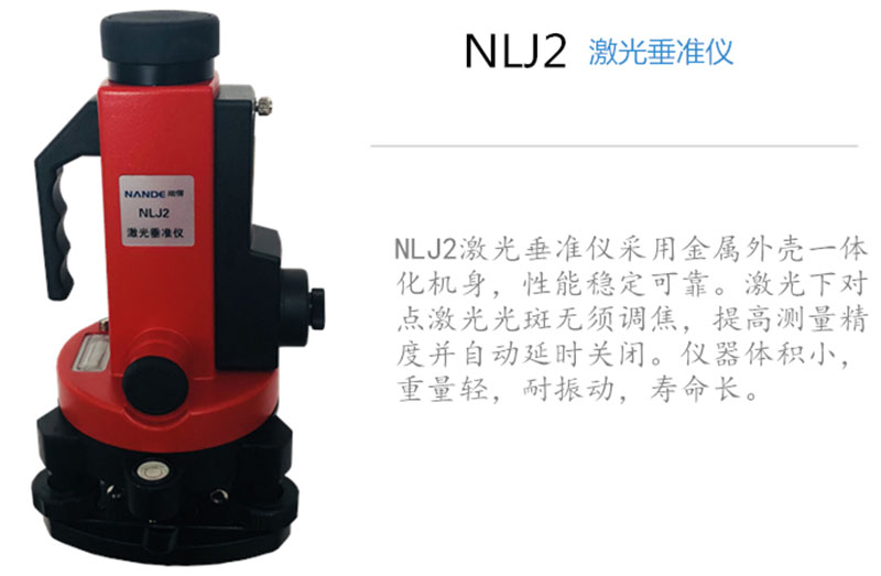 南得NLJ2激光垂准仪采用金属外壳一体化机身,性能稳定可靠。激光下对点激光光板无须调焦,提高测量精度并自动延时关闭。仪器体积小,重量轻,耐震动,寿命长。